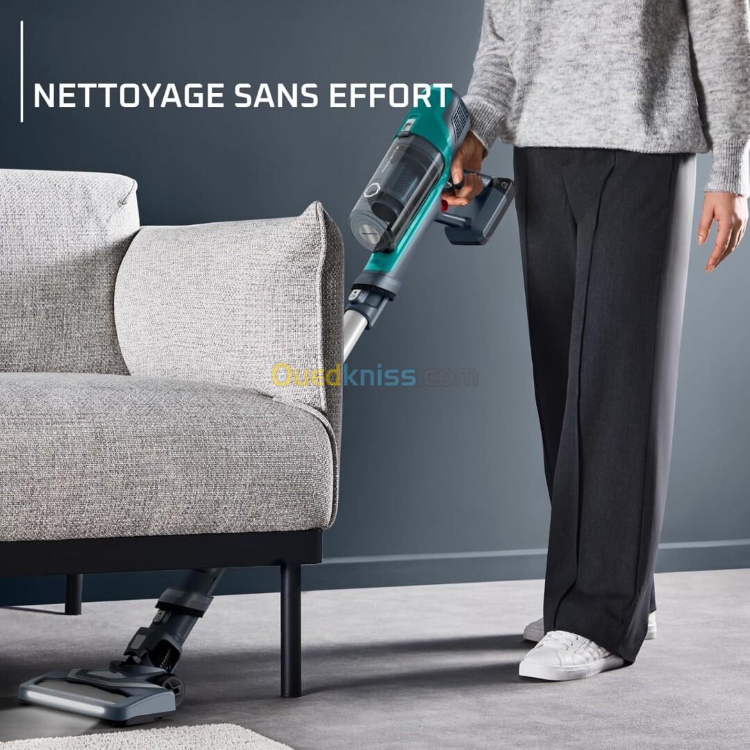 La solution de nettoyage essentielle pour une aspiration sans effort L'aspirateur balai sans fil X-PERT 6.60 de Rowenta offre une belle expérience de nettoyage grâce à sa tête d’aspiration avec un éclairage LEDs et sa technologie de pointe pour un nettoyage sans effort. Profitez de 45 minutes d'autonomie* avec sa batterie amovible de 18 V. Il est doté des vitesses automatiques ECO, SURFACE et sa gâchette « BOOST» vous permet d’obtenir plus de puissance en cas de besoin pour une aspiration en profondeur. A la fois compact et léger, il vous offrira un intérieur impeccable en un rien de temps. *Autonomie maximum en mode cleanette et aspiration puissance standard Résultats rapides et performants Cet aspirateur balai garantit une performance de nettoyage au quotidien sans effort : technologie cyclonique, moteur de 100 W, réglages automatiques ECO et SURFACE et gâchette « BOOST offrant une pleine puissance d'aspiration pour les accidents du quotidien Jusqu'à 45 minutes d'autonomie La batterie de 18V vous garantit une aspiration puissante et constante jusqu'à 45 minutes*. Comme elle est amovible, elle peut être chargée dans n'importe quelle prise de courant, aussi facilement qu'un téléphone portable, pour une liberté totale ! Une aspiration en toute légèreté et sans effort Son design fin et léger offre un nettoyage sans fil pour un total confort d'utilisation. Liberté de mouvement Grâce à la position Stop&Go, plus besoin de poser votre tube au sol lorsque vous aspirez vos meubles avec votre cleanette : il tient debout tout seul ! Facile d'entretien Bien qu’un nettoyage soit nécessaire, le réservoir à poussière est facile d’accès et se vide en un clin d’œil, sans avoir besoin de retirer le tube. Le cyclone, le filtre et le bac à poussière sont lavables à l’eau, pour conserver un appareil impeccablement propre.