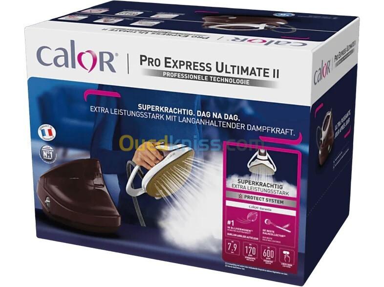 Performances de repassage : La puissance de 3000 Watts, le débit vapeur continu de 170 g/min et la fonction pressing ultra-efficace de 600 g/min vous offrent un repassage rapide, efficace et une élimination efficace des faux plis les plus tenaces. Défroissage vertical facile : Le défroissage des vêtements larges et délicats devient un jeu d'enfant avec la fonction de défroissage vertical, idéale pour éliminer les plis des costumes et d'autres pièces suspendues, notamment des rideaux. Vapeur haute pression : La centrale vapeur pro express Calor est dotée d'une haute pression de 7.9 bars pour une vapeur traversante optimale et une hydratation en profondeur des fibres. Autonomie illimitée : L'eau froide est stockée dans le réservoir et est envoyée dans la cuve à l'aide d'une pompe. Vous pouvez donc remplir à tout moment le réservoir amovible (capacité de 1,2 litre) qui n'est pas sous pression (à contrario de la cuve) sans débrancher et sans attendre le refroidissement de l'appareil. Son temps de chauffe ultra rapide de 2 minutes vous apporte un gain de temps non négligeable. Protection anti-goutte : Gardez tous vos vêtements impeccables grâce au système anti-goutte exclusif qui transforme les gouttelettes en vapeur brute pour une tranquillité d'esprit inégalée. Semelle auto-nettoyante avec technologie Durilium AirGlide AutoClean : Le fer à repasser centrale vapeur Calor est équipé d 'une semelle avec la technologie Durilium AirGlide qui vous garantit une meilleure glisse et un repassage rapide et sans effort. Elle est conçue pour faciliter son entretien et elle est plus résistante aux rayures. Son revêtement catalytique Auto-Clean aide à conserver la semelle sans tâches et dans un parfait état dans le temps. La diffusion de vapeur s'effectue par la pointe, coté et centre de la semelle. Simple d'utilisation : Choisissez simplement entre les modes délicat, normal et max., qui répondent à tous vos besoins en matière de soin des vêtements, avec des commandes accessibles pour une facilité d'utilisation totale. Lutte contre le calcaire : Son collecteur anti-Calc prolonge la durée de vie de votre appareil : le calcaire présent dans la cuve est attiré dans le collecteur. Il suffit ensuite de le rincer sous l'eau. Pratique et facile à utiliser : La sécurité est de mise avec son arrêt automatique. Verrouillage du fer pour un transport et un stockage aisés. Grâce à son mode Eco, économisez 20 % d'énergie par rapport à l'énergie consommée en position maximum.