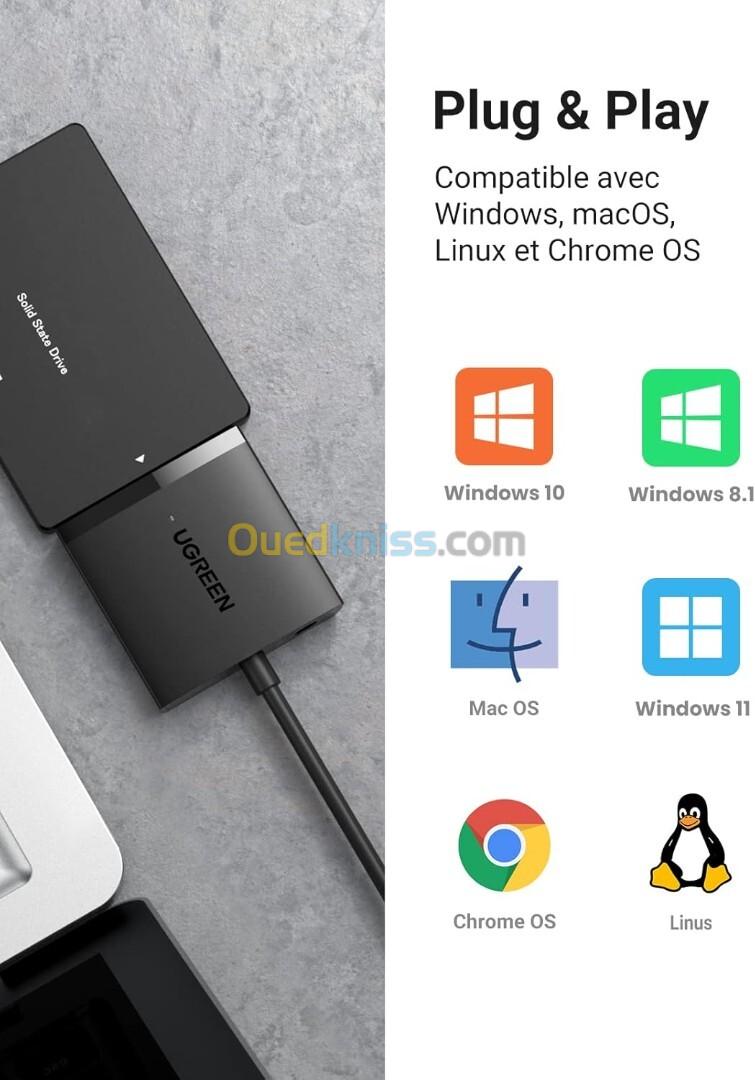 UGREEN Adaptateur USB SATA III Câble SATA USB Disque Dur pour 2,5 3,5 Pouces HDD SSD UASP