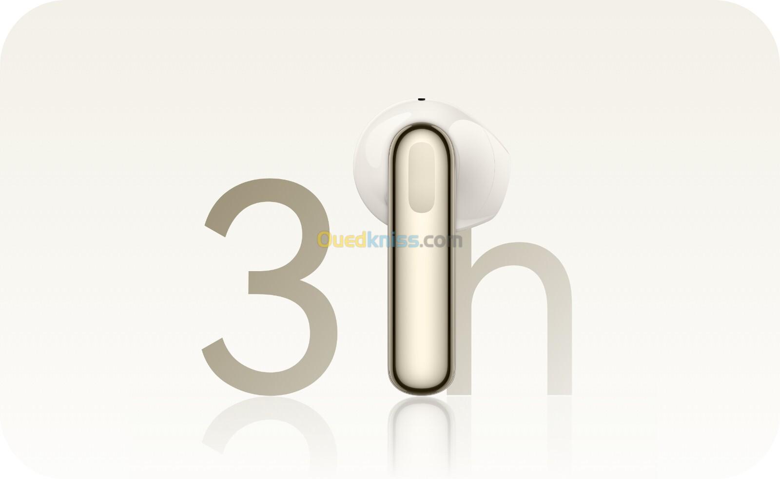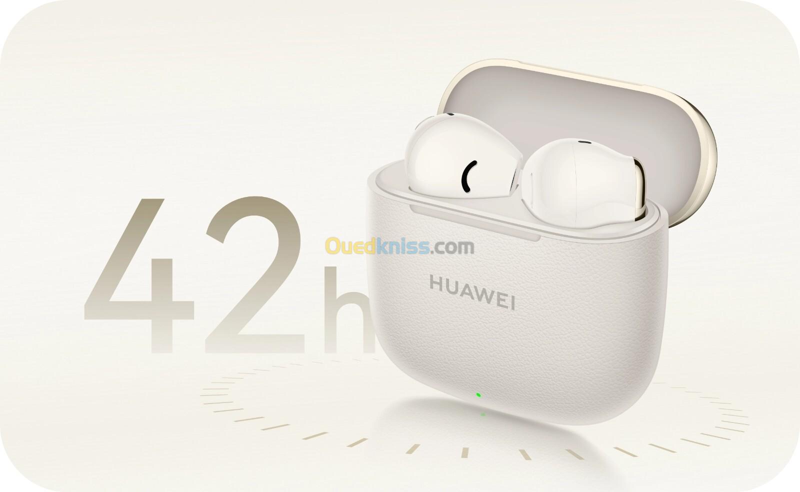 *Les données relatives à l'autonomie de la batterie proviennent des tests des laboratoires HUAWEI. Lors des tests, le son au format AAC a été diffusé à un niveau de volume de 50%. Les paramètres par défaut ont été utilisés pour les autres fonctionnalités. Les résultats réels peuvent varier en fonction du volume, de la source audio, des interférences environnementales, des caractéristiques du produit, des dispositifs auxiliaires, du système et des habitudes d'utilisation.