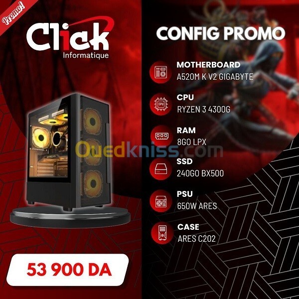 CONFIG /R3 4300G/RAM 8GO LPX /240GO SSD BX500/A520M K GIGABYTE V2/650W ARES/ARES C202