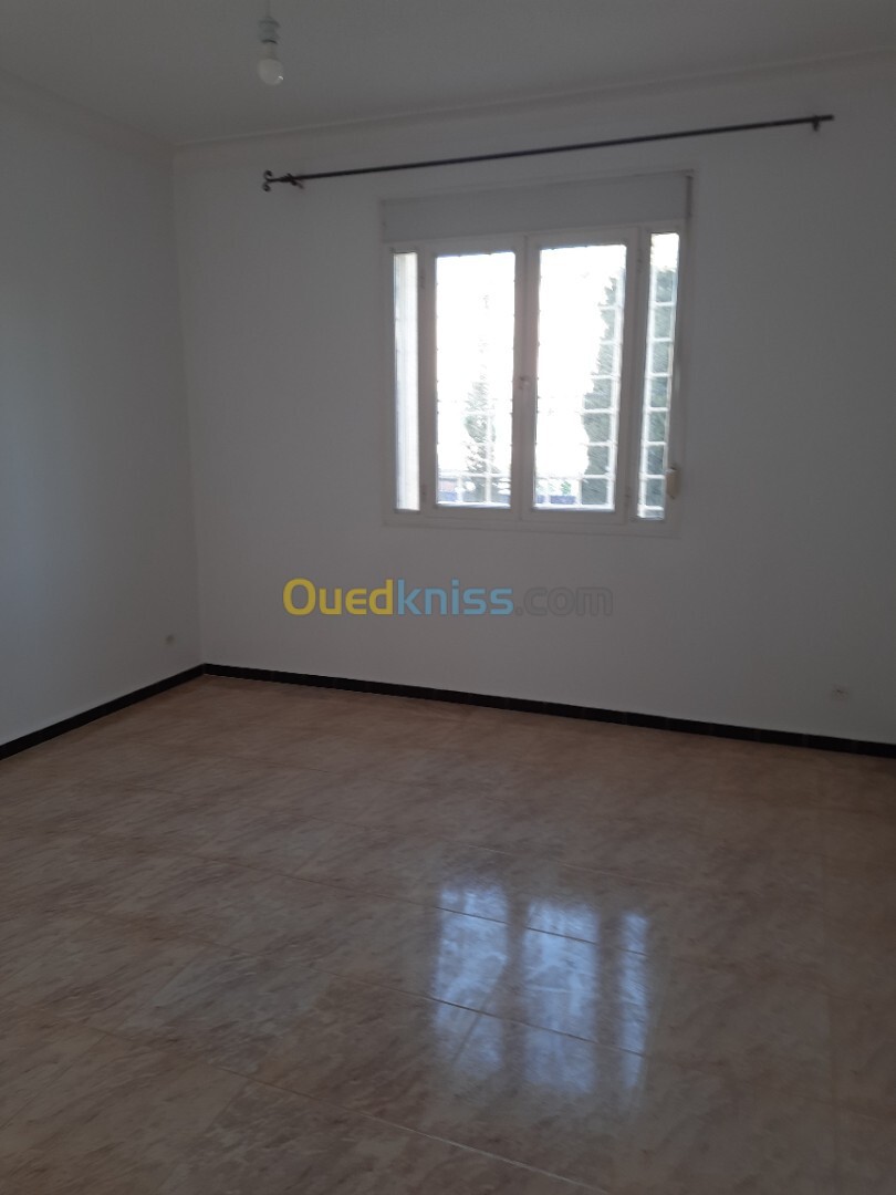 L'agence immobilière Yaya met en location un joli appartement F3 très spacieux de 133m2 au 1er étage de villa situé dans une résidence de lots de villas très sécurisée, avec accès faciles à toutes les zones d'intérêt par autoroute et routes côté littoral et sur ben Aknoun. Pas loin de l'Hôtel Holliday In et Centre Commercial Gardden... Garage pour 1 voiture, stationnement à proximité de la villa,Bâche à eau,.. partage des espaces communs jardin.
