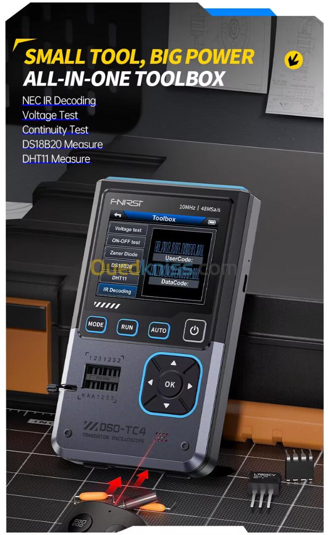 FNIRSI-DSO-TC4 is committed to providing users with powerful, flexible functions and portable operation experience, and is an ideal tool for maintenance and R&D work.