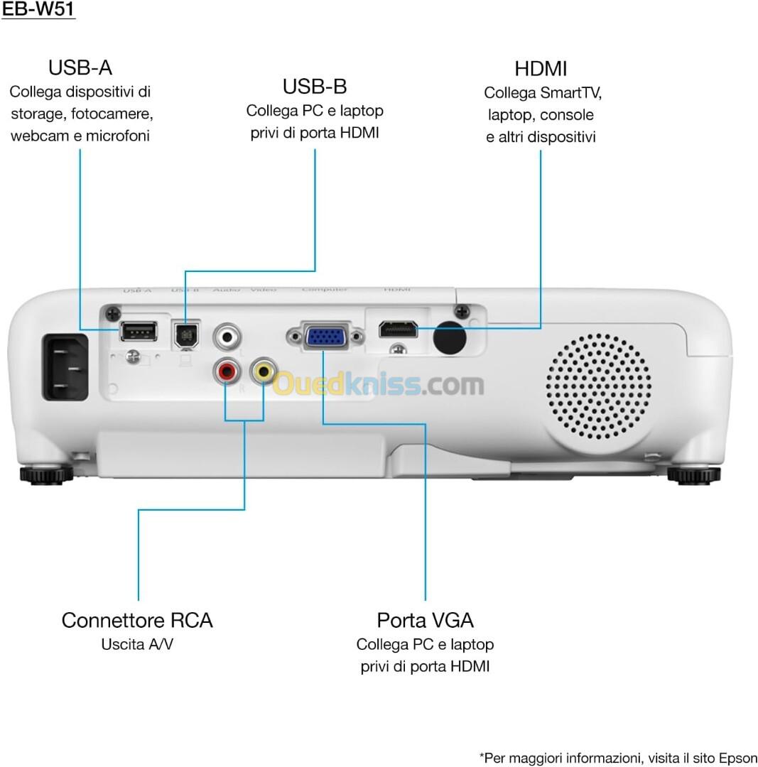 Vidéoprojecteur EPSON EB-W51 3LCD Projecteur WXGA 1280 x 800p, 4000 lumens , 16 000:1