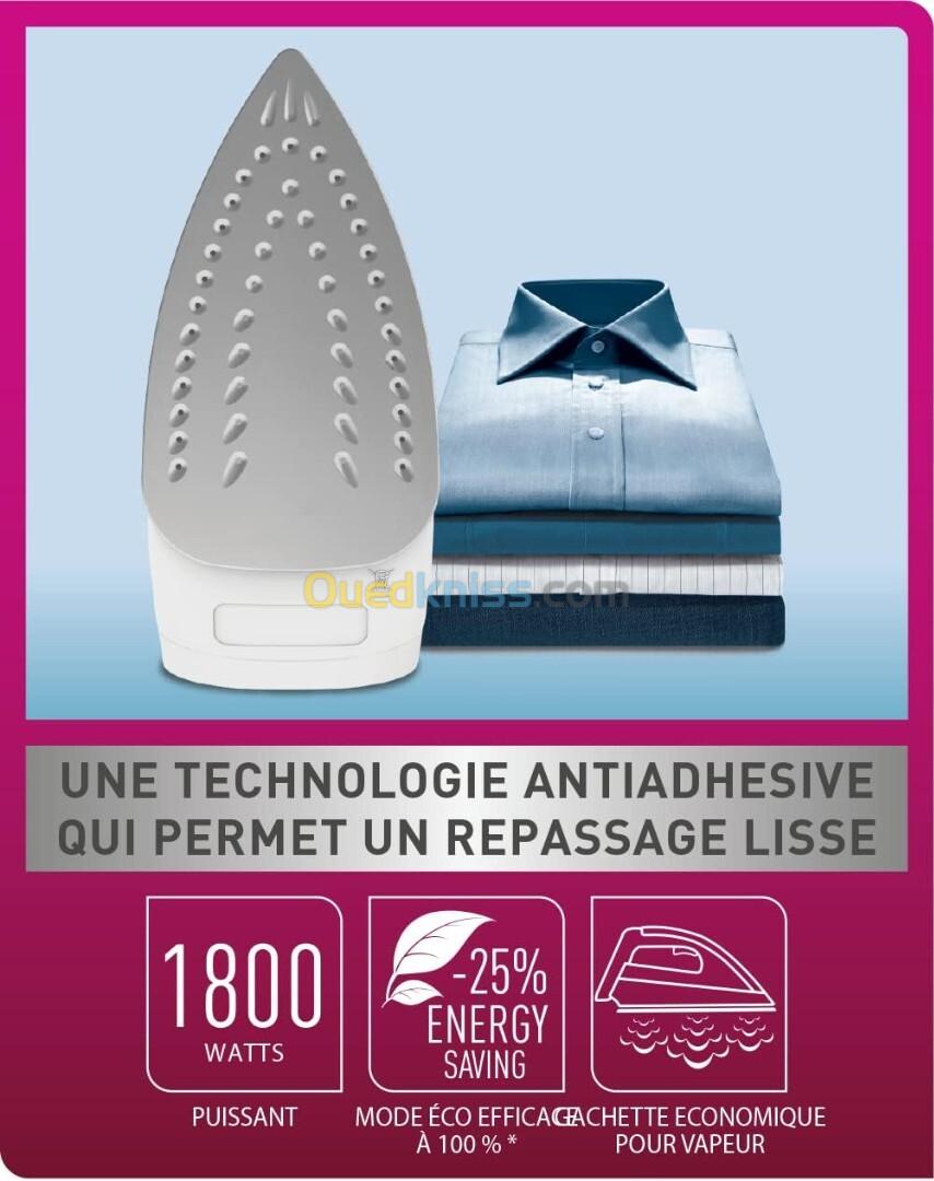 PERFORMANT : Profitez d'un repassage rapide et facile grâce à une puissance de 1800 W et une fonction pressing de 80 g qui vient à bout des faux plis les plus tenaces