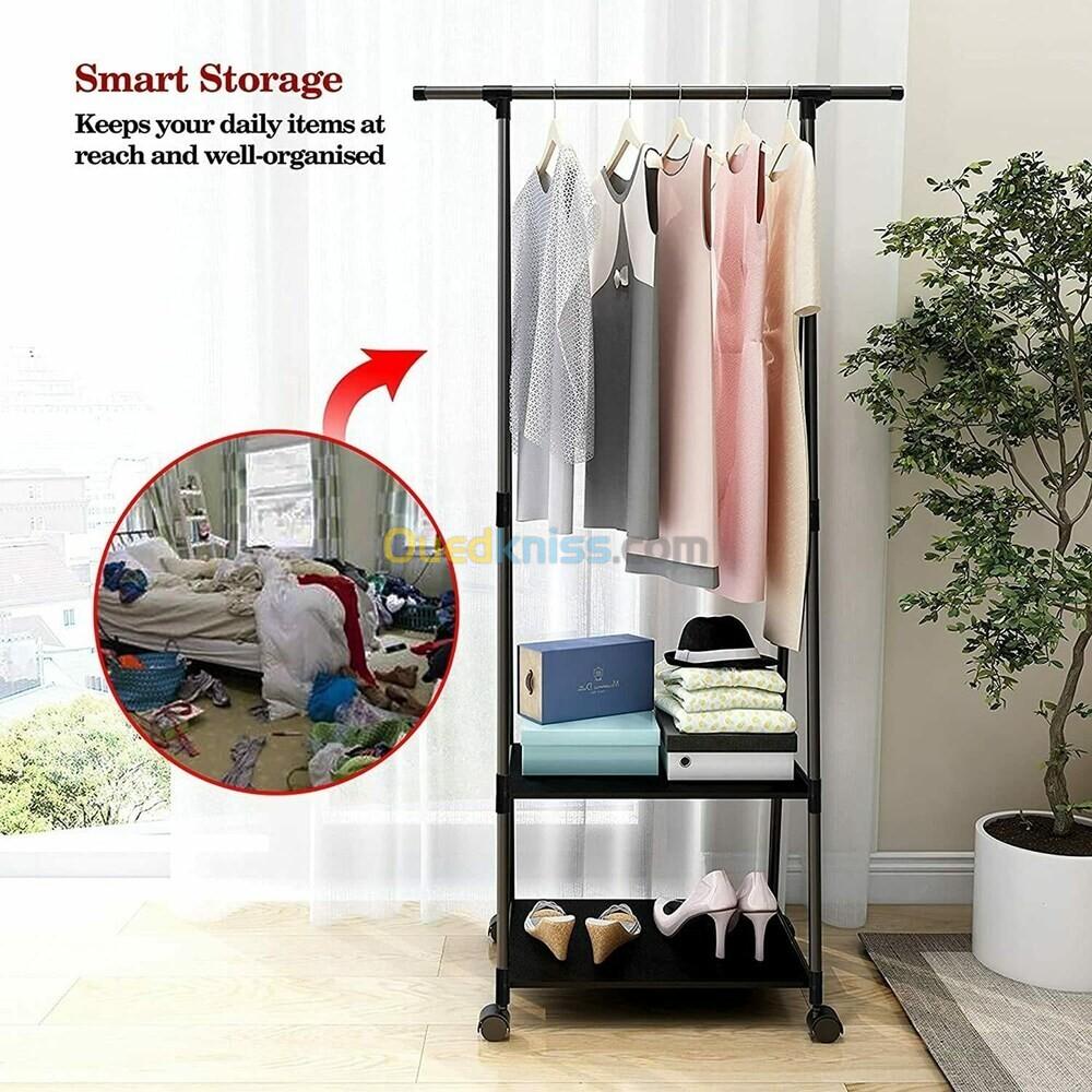 Porte Vêtements Roulant Avec Etagère Et Roulettes Verrouillables