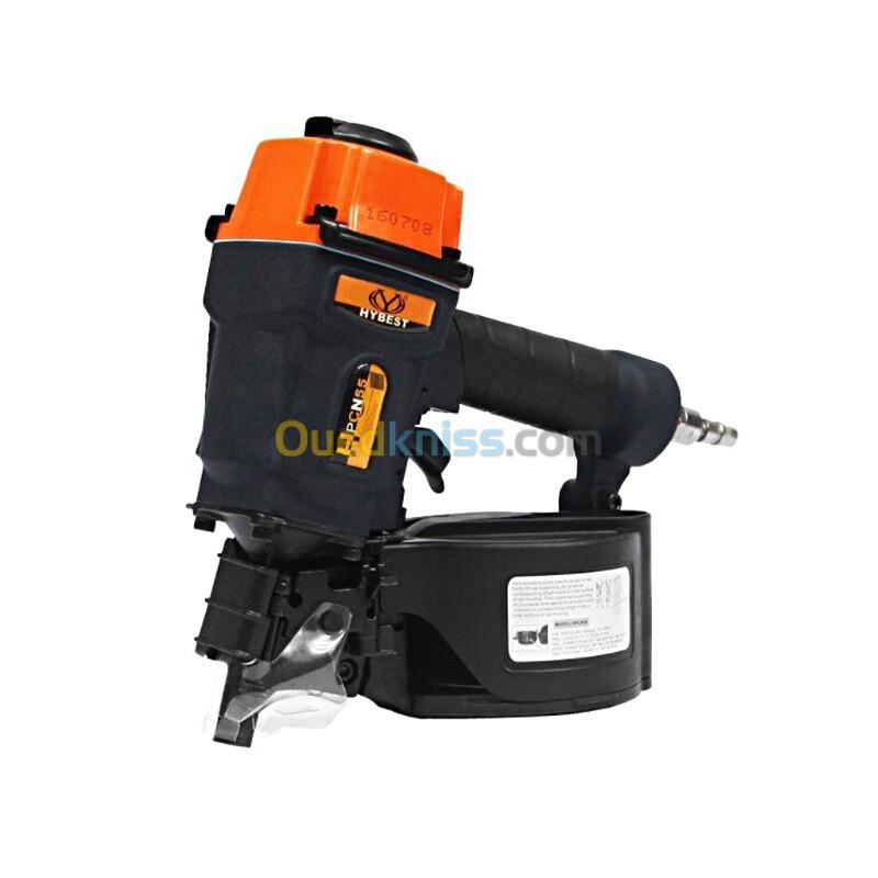 la cloueuse pneumatique à bobine HYBEST HPCN55 est compatible avec les clous à bobine rassemblés en fil de fer, s'adapte à des longueurs de 5 cm à 3-1/4", et des diamètres de tête de Φ6 à Φ7,2 mm. Elle est idéale pour les projets d'amélioration et de réparation, ainsi que pour le montage de palettes, de caisses en bois, de clôtures et pour la gestion de tâches générales de construction telles que les murs extérieurs, les terrasses et les logements.