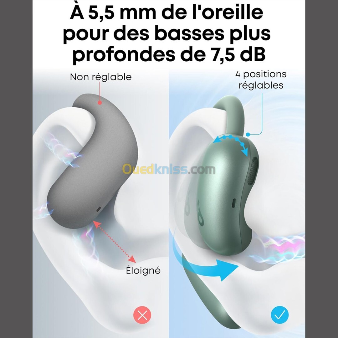 - Les contours d’oreilles réglables sur 4 niveaux s’adaptent à plus de 99 % des formes et tailles d’oreilles, offrant un maintien stable et confortable pour chacun.