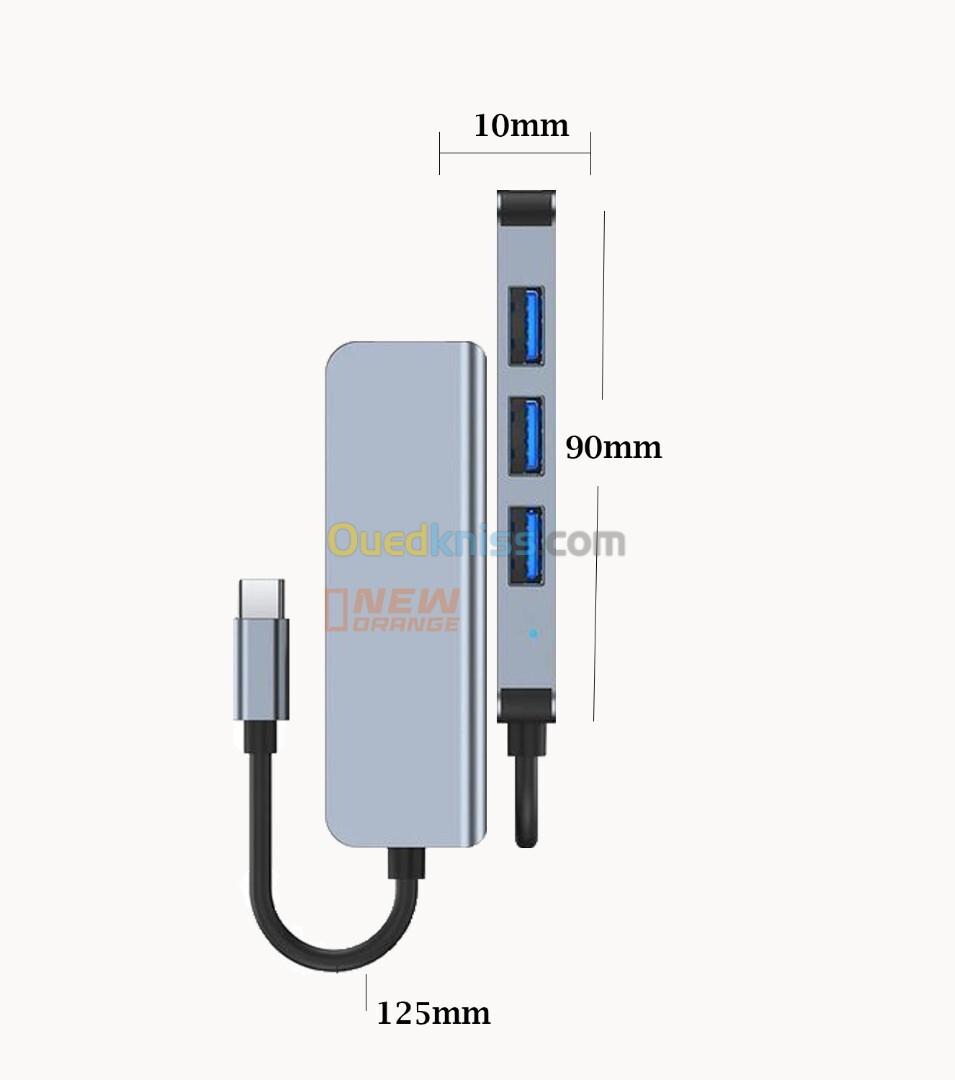 Adaptateur USB-C Vers 4 ports USB3.0 4EN1Pro Techr