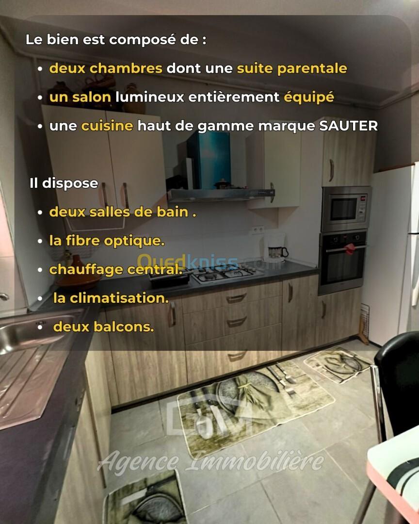 Un superbe appartement F3 de 112 m², entièrement meublé, situé au 1ᵉʳ étage d’une résidence moderne et sécurisée à Dely-Brahim.