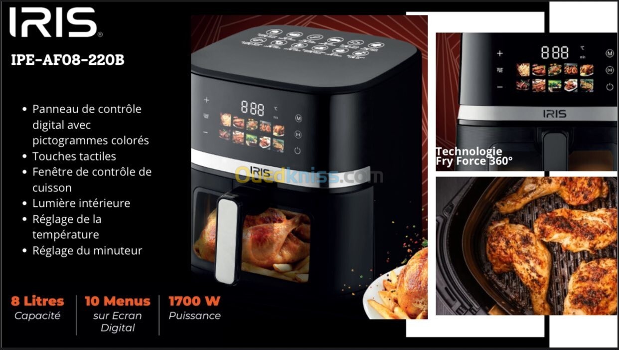 IRIS AIRFRYER IPE-AF08-220b 8L 1700W 10MENUS
