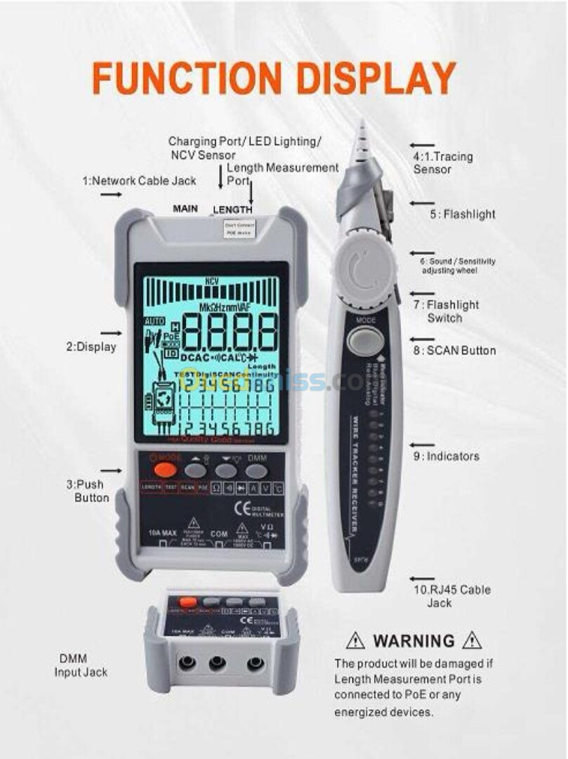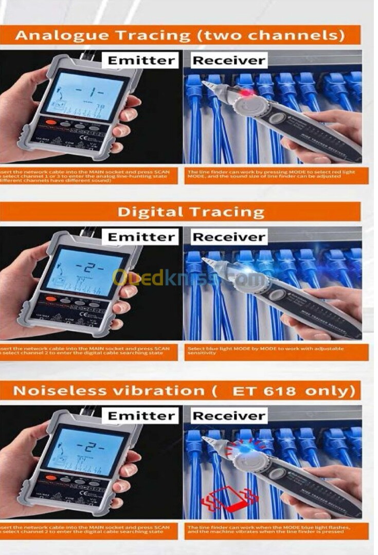 • Testeur de longueur de câble : Mesure la longueur exacte d’un câble réseau, utile pour vérifier des installations ou localiser des défauts.