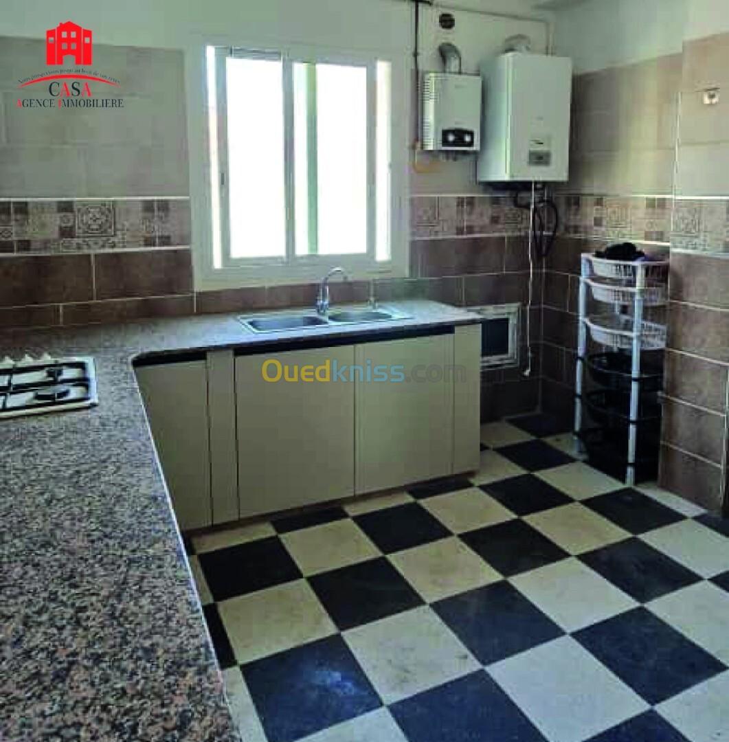 Beni Messous, Sidi Youcef, coopérative El Amel, dans un quartier calme avec un bon voisinage, Casa Immo met en location un niveau de villa de type F3 au 3e étage, d'une superficie de 130 m². L'appartement est spacieux, ensoleillé, offre une vue dégagée et dispose de toutes les commodités : cuisine équipée, chauffage central, balcon, citerne. Stationnement disponible au bas de la villa avec caméra de surveillance. Idéal pour habitation : une Famille ou un Couple marié.