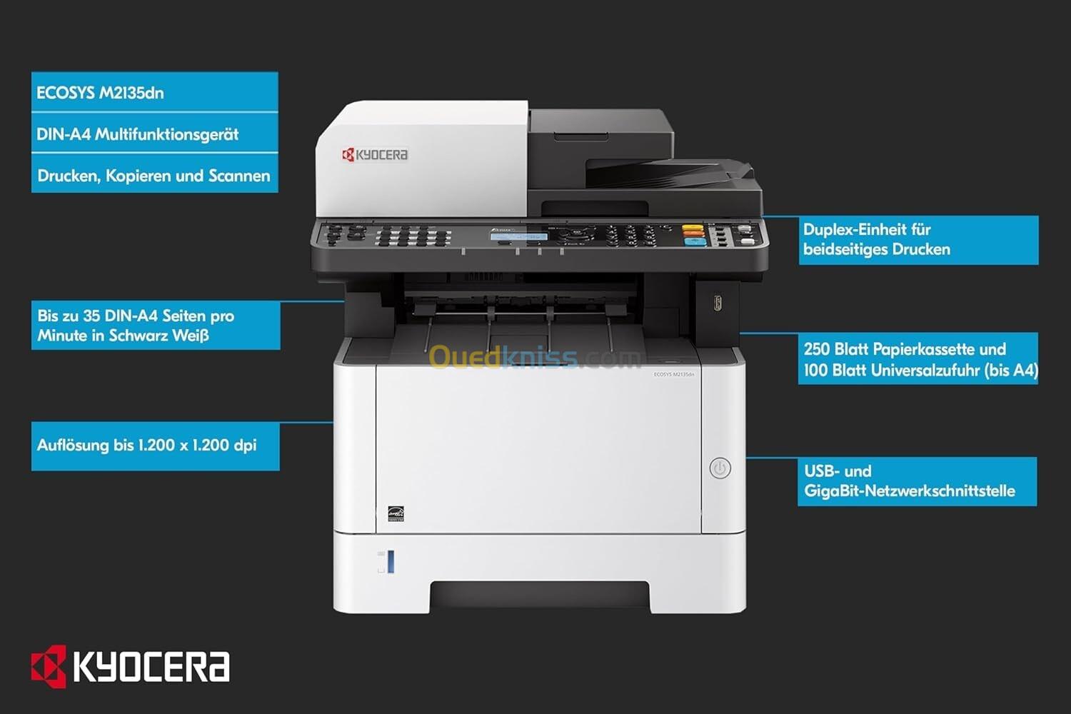 IMPRIMANTE KYOCERA MULTIFUNCTION M2135DN LASER / DUPLEX RECTO-VERSO / NETWORK
