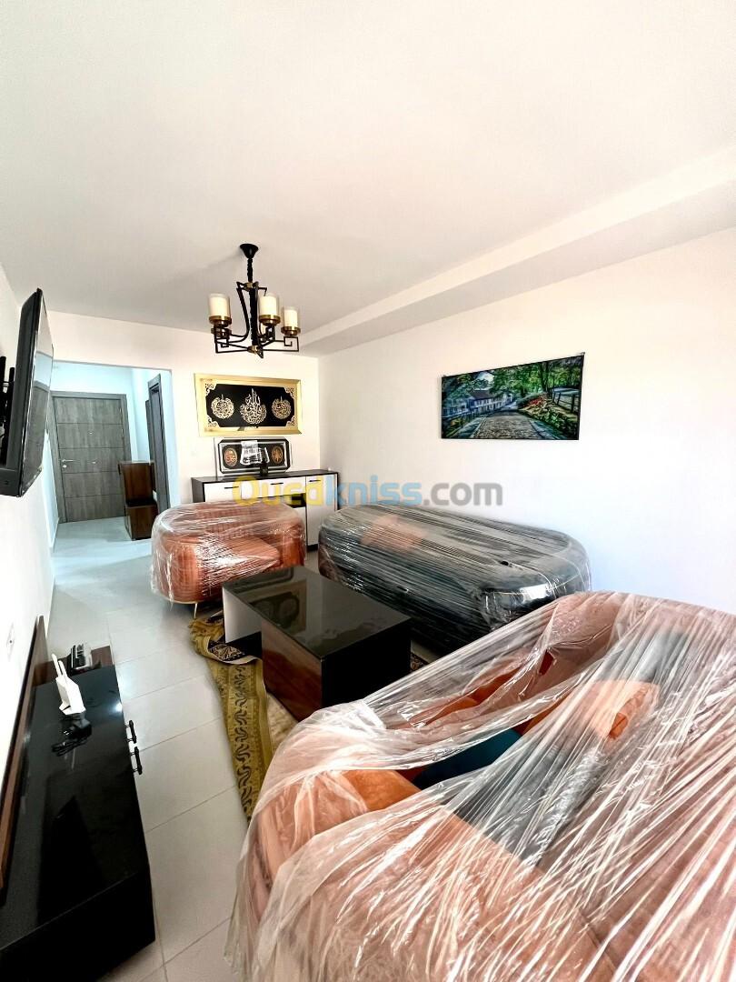 Leading Immobilier met en location un joli appartement F3 jamais habitée de 97 m2 entièrement meublé et équipée , télévisions , climatisations , électroménager , vaisselles etc ...