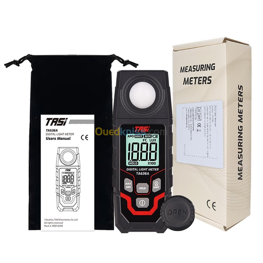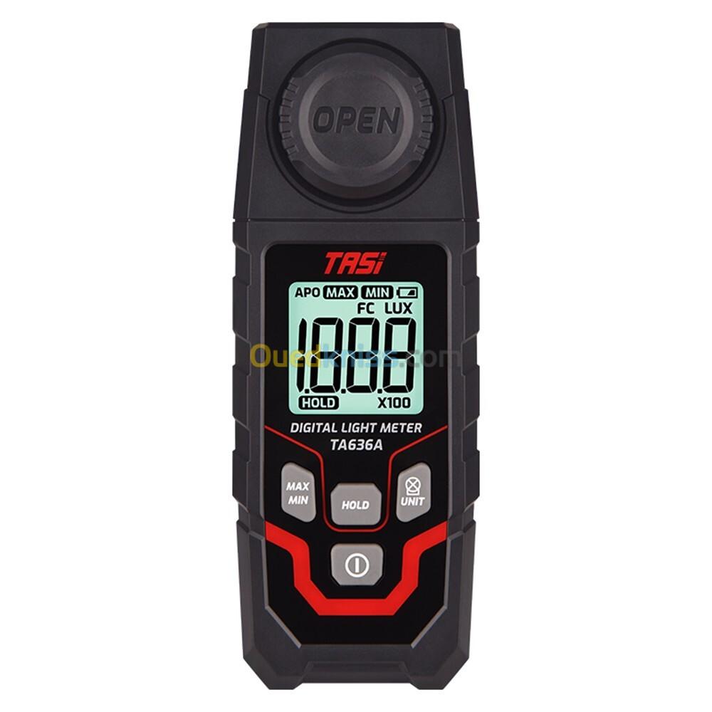 Cet appareil est un luxmètre numérique (Digital Light Meter) de la marque TASI, modèle TA636A. Il s'agit d'un instrument de mesure de précision conçu pour évaluer l'intensité lumineuse d'un environnement.