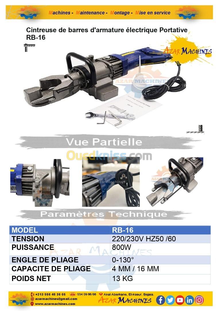 Azar Machines vous propose une Cintreuse électrique Professionnelle de Barres d'armature, cintreuse en Acier électrique portative de cintreuse hydraulique de Barres d'armature, Angle de cintrage de Tige en Acier 0-130 ° 4-16 mm RB.