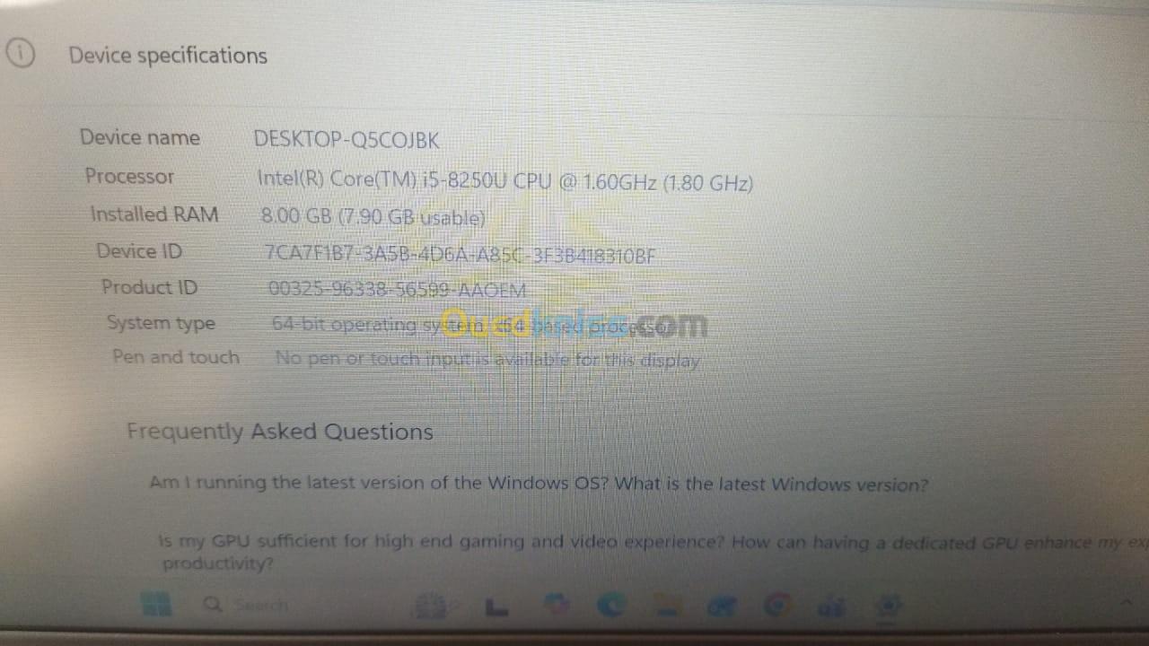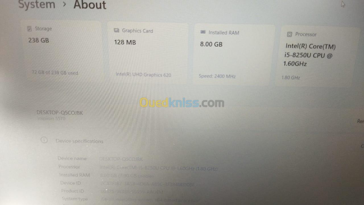 LAPTOP DELL INSPIRON 5570 I5 8GEN 15.6" 8GO 256GO SSD