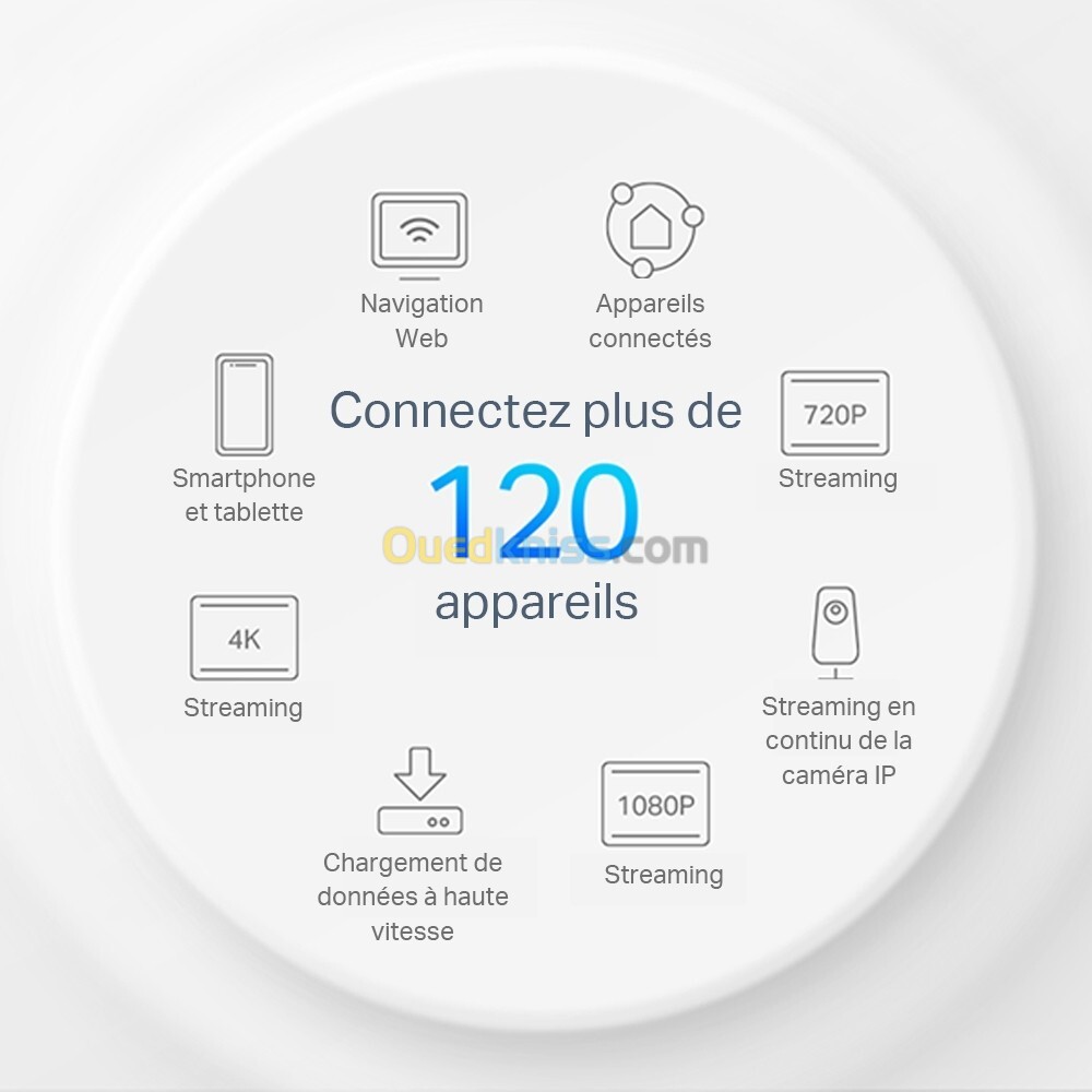 Connectez plus d'appareils : les technologies OFDMA et MU-MIMO quadruplent la capacité pour permettre une transmission simultanée à davantage d'appareils. △