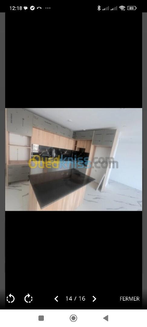 Agence immobilière Aziz mât en vente un appartement type F3 en 4éme étage avec ascenseur dans un nouvel promotion immobilière sur la grande boulevard à Birkhadem zonka avec cuisine équipée et climatiseur et chauffage central libre de suite