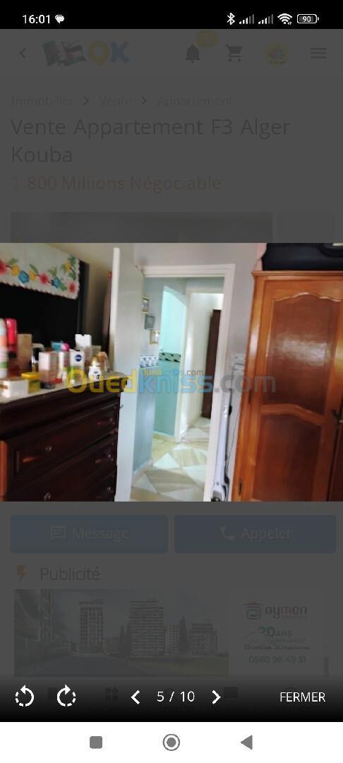 بيع شقة 3 غرف الجزائر القبة