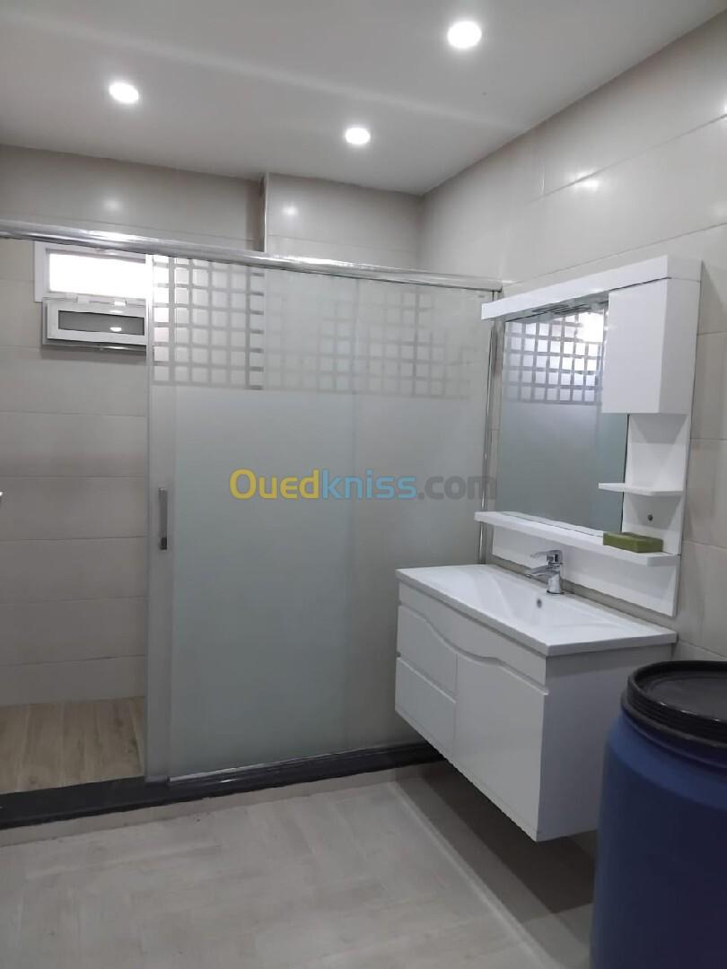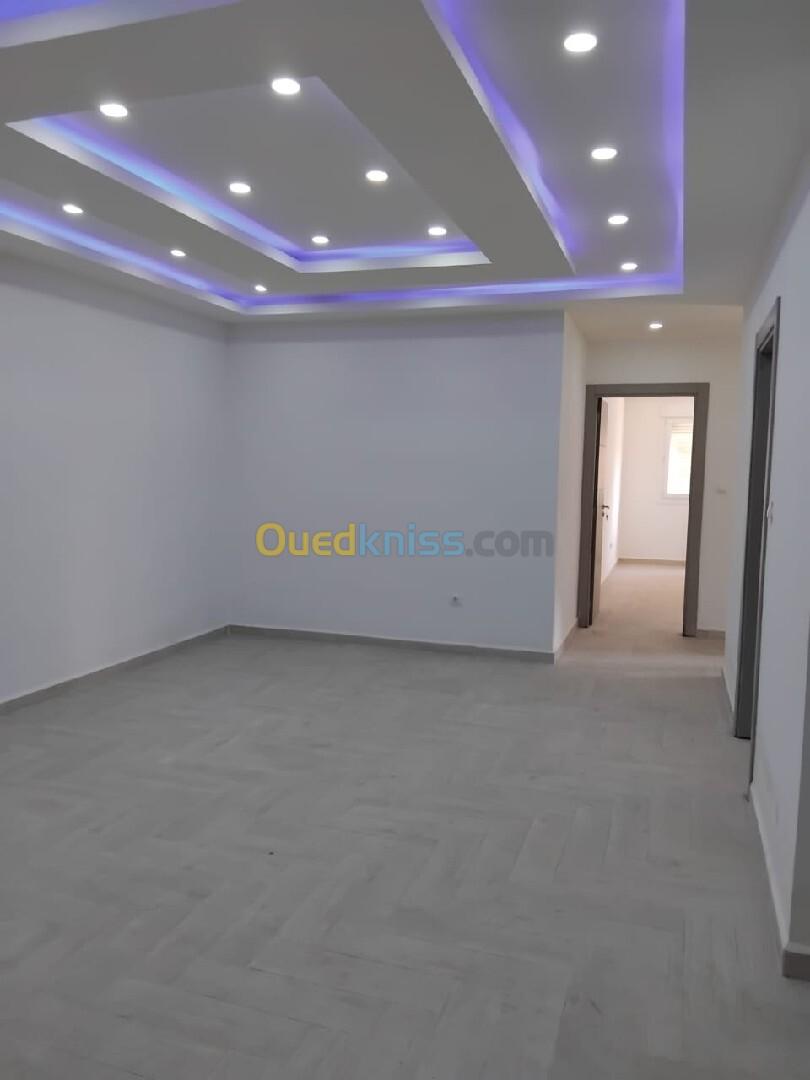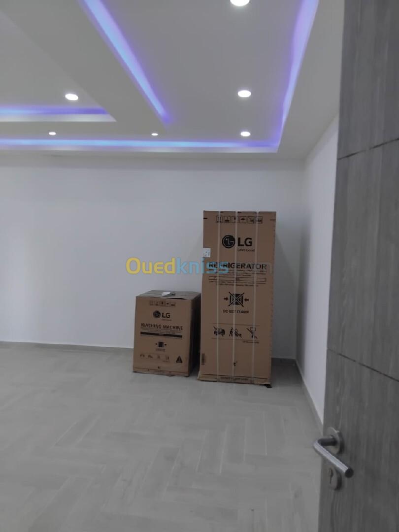 Agence immobilière Aziz mât en vente un appartement dans un nouvel promotion immobilière type F3 en 1er étage superficie de 132M² à kouba centre avec chauffage central et climatiseur et cuisine équipée avec un box pour une voiture