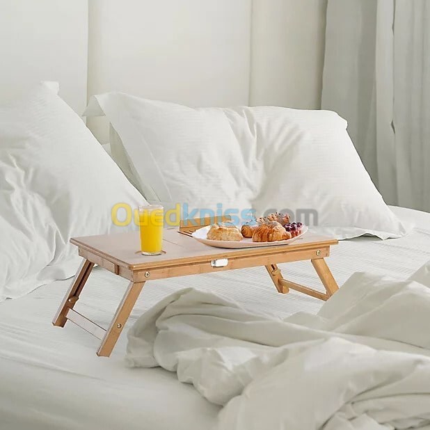 Fait de matériel En Bambou, laissez le plateau de table brillant vous donner une bonne touche! Totalement portable-conception compacte et pliage facile. L'ange d'inclinaison peut être ajusté. Support et angle facilement réglables pour un confort maximal et une position appropriée. Avec tiroir pour magasin compact quelques petits articles, comme ton stylo, mémos et etc..