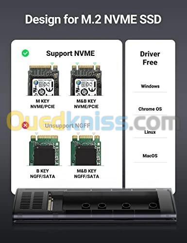 Design for M.2 NVMe SSDs: The UGREEN NVMe M.2 enclosure ONLY supports NVMe SSD (M Key/B+M Key) up to 2TB. Applicable with SSD in sizes 2230/2242/2260/2280, compatible with Crucial WD Kingston Integral, etc. Note: DOES NOT SUPPORT NGFF SSD.