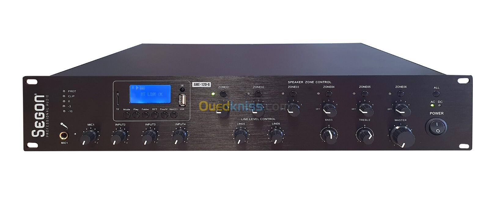 Ampli préamplificateurs 6 Zones avec sources audio Tuner, USB et Bluetooth
