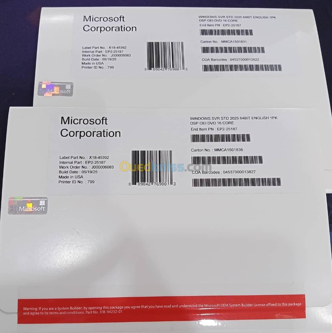 LICENCE WINDOWS SERVER 2025 STANDARD 64 BITS DVD CPFFRET