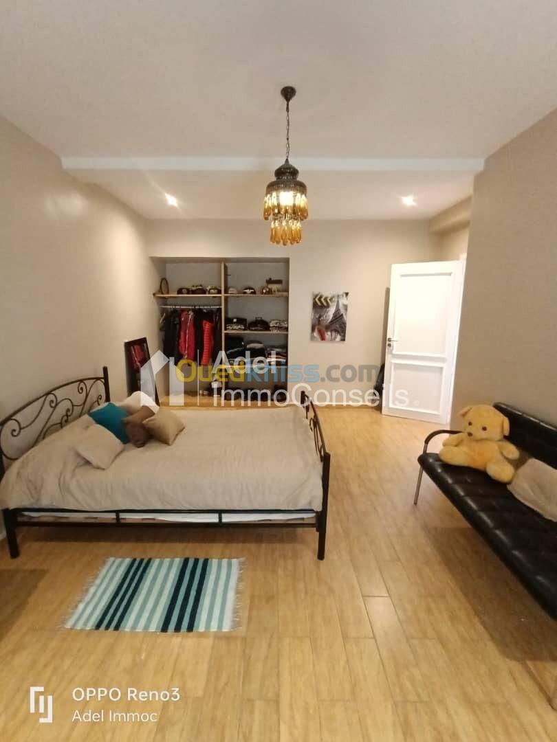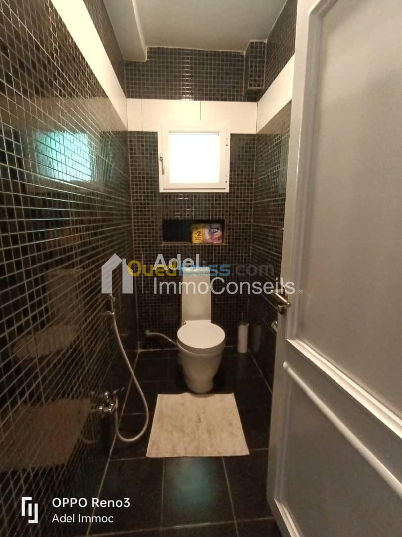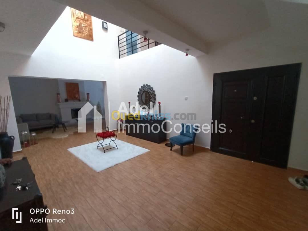 Vente Jolie Villa R+2 bien située à la Caroube II, 175m² de surface bâtie sur un terrain de 341m², au RDC: grand garage, jardin, au 1er étage: grand salon, grande cuisine équipée, salle de bain, wc, au 2ème étage: 3 grandes chambres, suite parentale avec salle de bain, plus une terrasse accessible au 3ème étage et un F2 avec une belle vue dégagée sur mer, intérieur très bien finie, avec finition moderne et chic, équipé de chauffage central, cuisine meublée et équipée, bâche à eau, sol en parquet, quartier calme et résidentiel, avec acte et livret foncier, pour 7 milliards 500 millions négociable ... (visite gratuite) ... Contactez "Adel Immoconseils" votre conseiller en immobilier, merci.