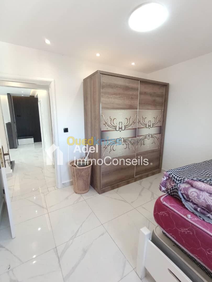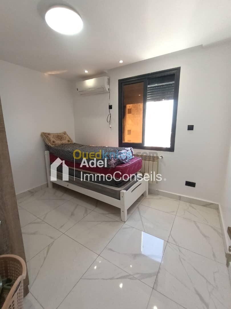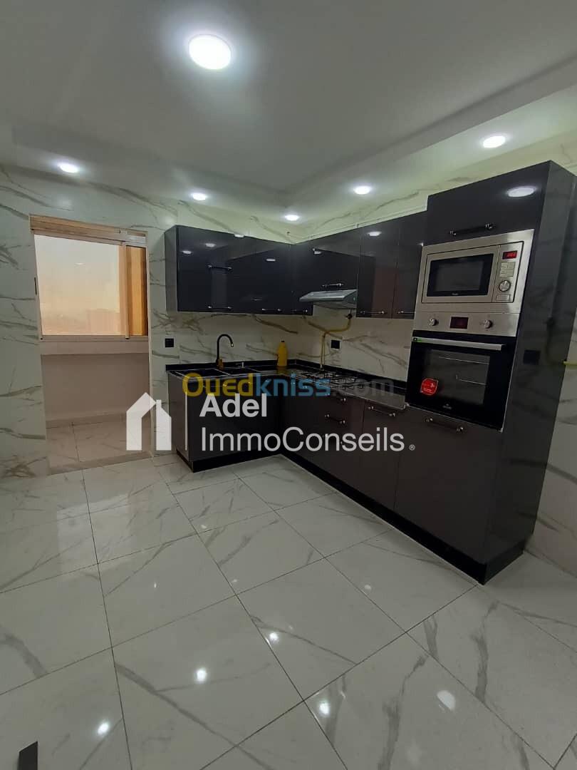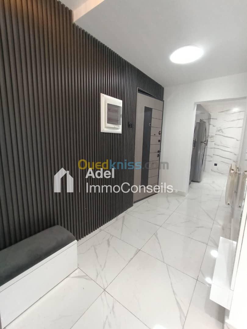 Vente joli Appartement F4 bien situé à la cité Kouba dans les Tours de "Genisider", 110m² sur un étage élevé avec 2 ascenseurs opérationnels et une vue dégagée sur mer, intérieur très bien aménagé, aéré et ensoleillé, finition moderne et contemporaine, cuisine équipée (plaque de cuisson, hotte, four,) réfrigérateur, machine à laver, télévision, 4 climatiseurs, chauffage central, réservoir avec moteur, dalle de sol; fenêtres avec volets roulants, douche italienne, résidence clôturée et gardée 24h/24h, voisinage respectueux, quartier familial et recherché proximité immédiate des écoles, transports en commun, commerces, et à quelques minutes à pied de la corniche et des plages, appartement libre de suite, avec acte et livret foncier, prix offert 2 milliards 500 millions, prix demandé 3 milliards ... (visite gratuite) ... Contactez "Adel ImmoConseils" votre conseiller en immobilier, merci.