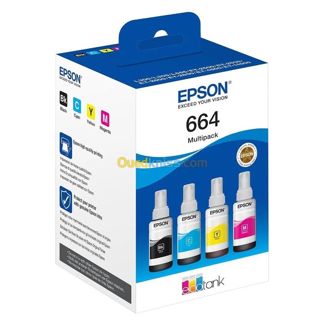 PACK CARTOUCHE EPSON 664 POUR IMPRIMENTE EPSON L100 / Epson ET 14000 , Epson ET 16500 , Epson ET 2500 Series , Epson ET 2550 , Epson ET 2600 , Epson ET 2650 , Epson ET 3600 , Epson ET 4500 , Epson ET 4550 , Epson Ecotank ET-14000 , Epson Ecotank ET-16500 , Epson Ecotank ET-2500 Series , Epson Ecotank ET-2550 , Epson Ecotank ET-2600 , Epson Ecotank ET-2650 , Epson Ecotank ET-3600 , Epson Ecotank ET-4500 , Epson Ecotank ET-4550 , Epson Ecotank L100 , Epson Ecotank L110 , Epson Ecotank L120 , Epson Ecotank L1300 , Epson Ecotank L1455 , Epson Ecotank L200 , Epson Ecotank L210 , Epson Ecotank L350 , Epson Ecotank L355 , Epson Ecotank L365 , Epson Ecotank L550 , Epson Ecotank L555