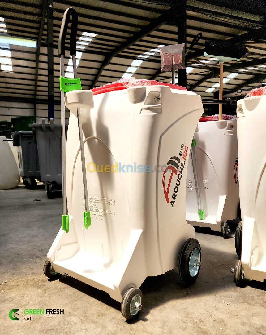 Modèle déposé par GREEN FRESH ! Equipé de trois ustensiles ( Balai, Pince de ramassage, Pelle ) et d'un bac amovible de 70 litres.
