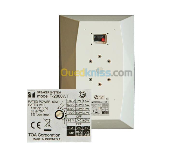 HAUT PARLEUR MURAL TOA 60W F-2000WT 70/100V, dispersion large, blanc cassé