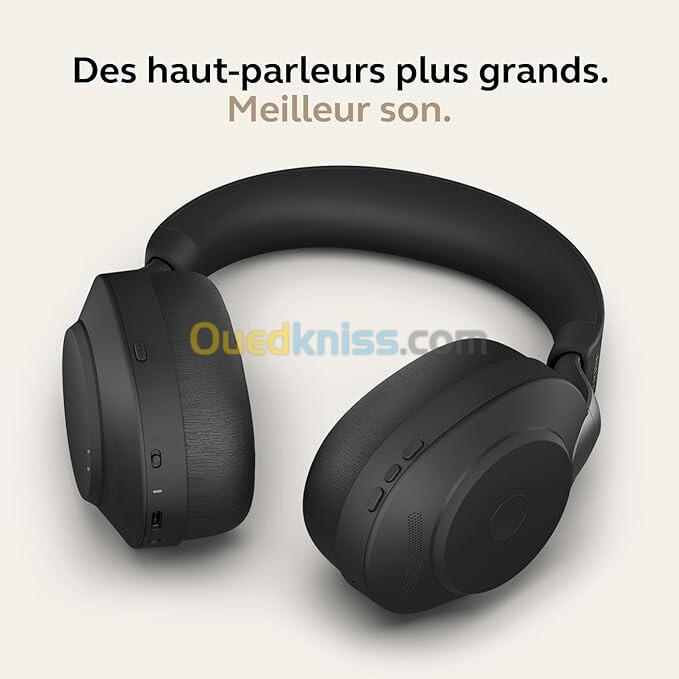 -Le Jabra Evolve2 85 est un casque sans fil professionnel de type circum-aural (entourant les oreilles), conçu pour offrir un confort extrême, un son exceptionnel, et une réduction de bruit active (ANC) de très haut niveau. Pensé pour les environnements de travail bruyants, il combine technologie avancée, autonomie longue durée et design élégant pour répondre aux exigences des utilisateurs modernes.