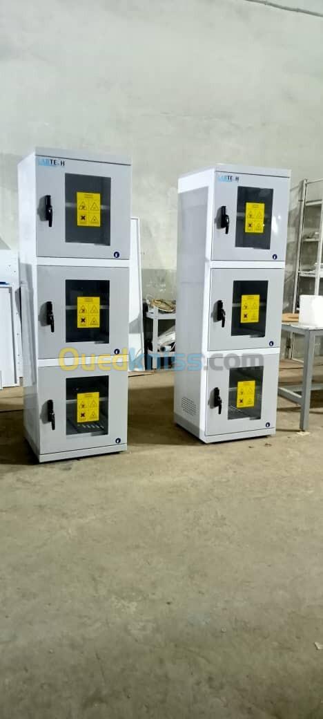 ▪ 04 étagères de stockage en acier recouvert antiacide, réglable en hauteur;
