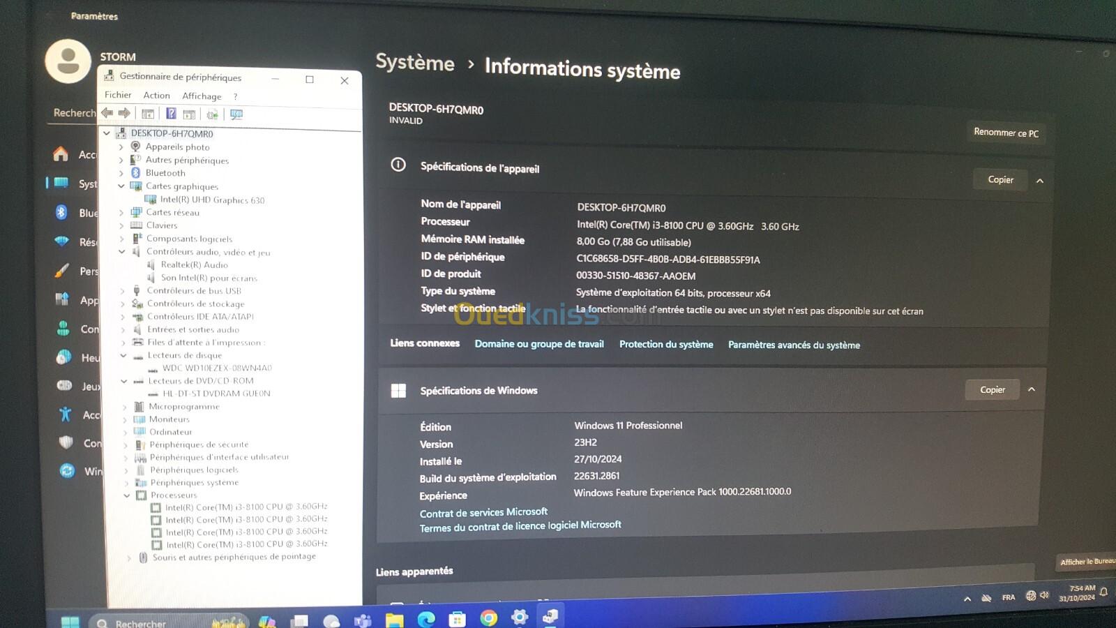 PC ALL IN ONE (TOUT EN UN) OCCASION DE LA MARQUE LENOVO MODEL V330-20ICB. Processeur Intel Core i3-8100 (Quad-Core 3.6 GHz - Cache 6 Mo). Graphique Intel UHD Graphics 630. Mémoire DDR4 8GB SUR 02 SLOT. Stockage HDD 1000GB + SLOT M.2. Graveur DVD Super Multi. Wi-Fi AC, Bluetooth 4.0, Ecran LED 19.5'' Résolution Max (1600 x 900), WebCam. Connecteurs avant 1X Jack 3,5mm Femelle Stéréo, 1X USB 3.0, 1X USB 3.1. Connecteurs arrière 1X RJ45 Femelle, 3X USB 3.0 ,1X USB 3.1, 1X HDMI Femelle. Multimedia Card SD (Secure Digital),SDHC,SDXC. License Windows 11 Pro numerique. Sans Clavier et souris.