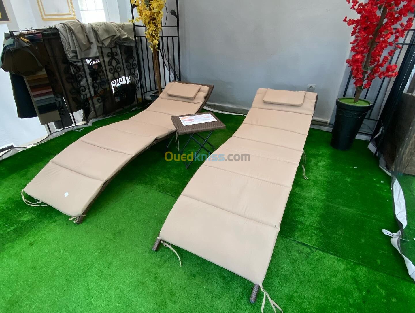________________ 2 CHAISE LONG + TABLE BASSE POUR JARDIN ET PICSINE ________