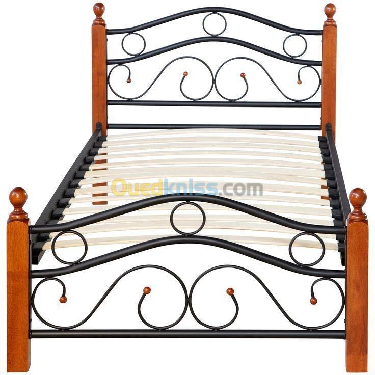 Nom du produit : Lit simple en métal et bois
