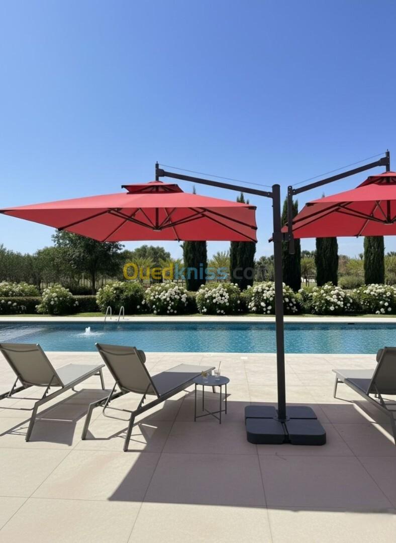 Parasol 3 m sur 3m /6m sur 3m /6m sur 6m avec socle et sans socle structure en aluminuim