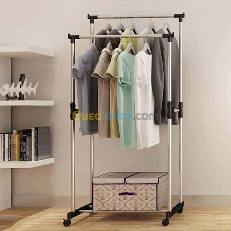 Vous souffrez d’encombrement dans votre chambre ? Le cintre avec le support d’organisation sera certainement une solution à votre problème, composé d’une structure en acier inoxydable robuste avec une grande capacité et une capacité de charge pour accrocher facilement vos différents vêtements et chaussures, en plus de roues qui facilitent le transport. à vous de le déplacer confortablement dans votre chambre.