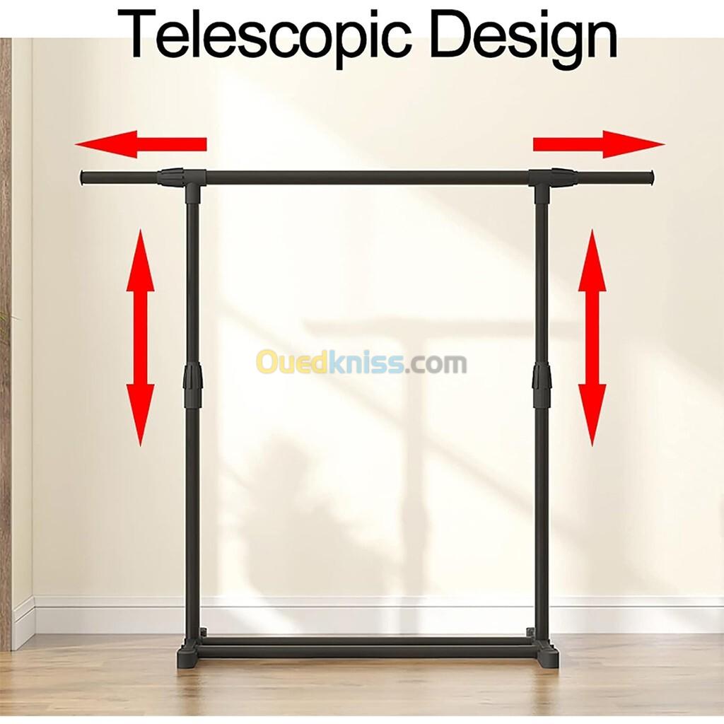 Penderie Mobile Double Barres Extensible Hauteur réglable avec 4 Roulettes V6