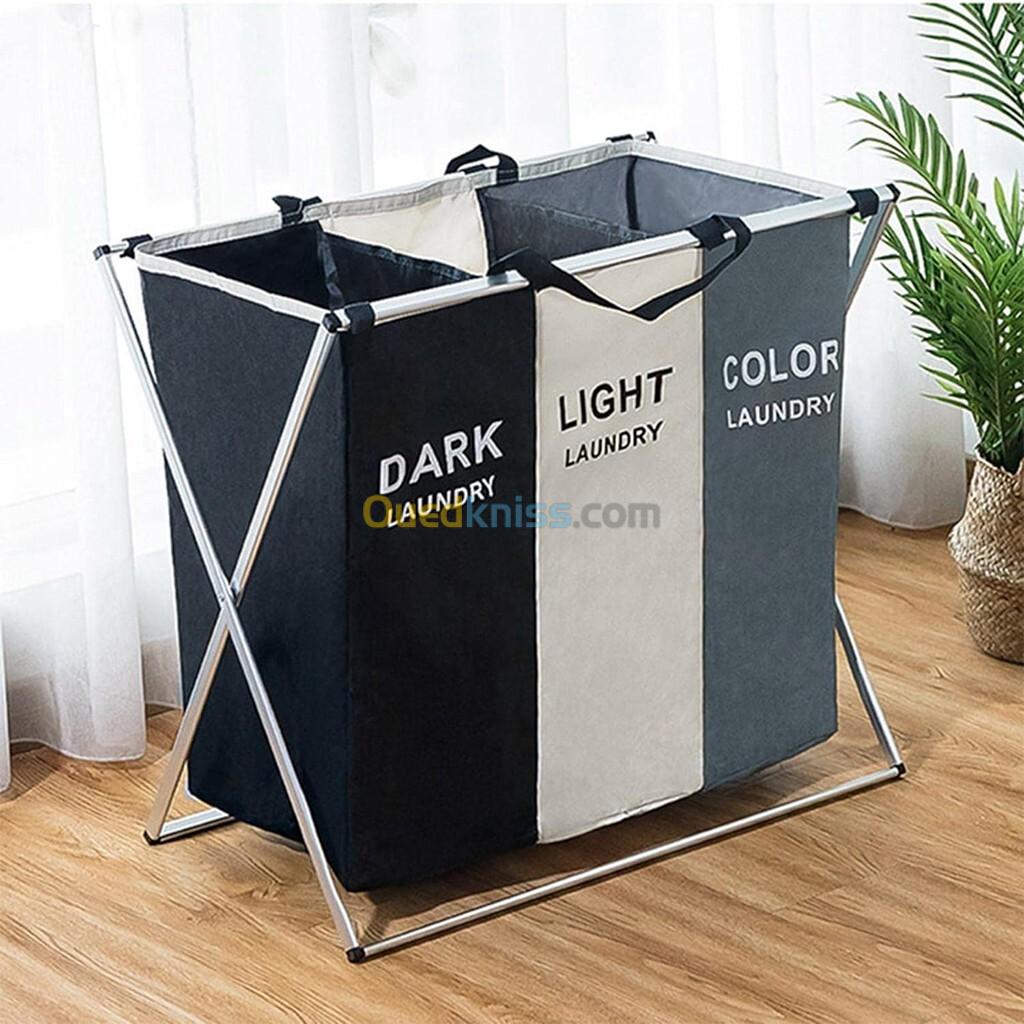 Panier à linge sale pliable avec 3 grilles pour séparer les vêtements V3