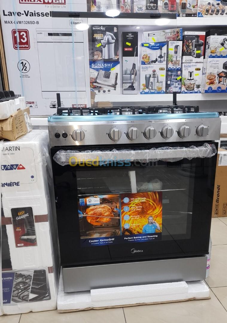 Promotion cuisinière midea 5 feux ventilé inox 75cm garantie 24 mois