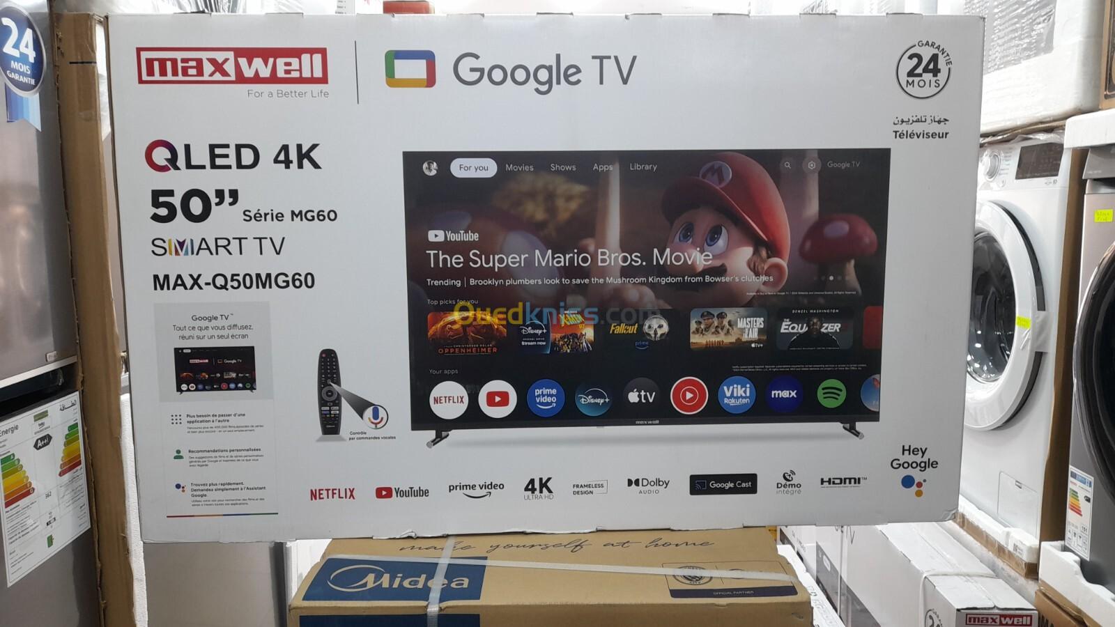 Promotion téléviseur maxwell 50 pouces smart Google tv QLed 4k garantie 24 mois