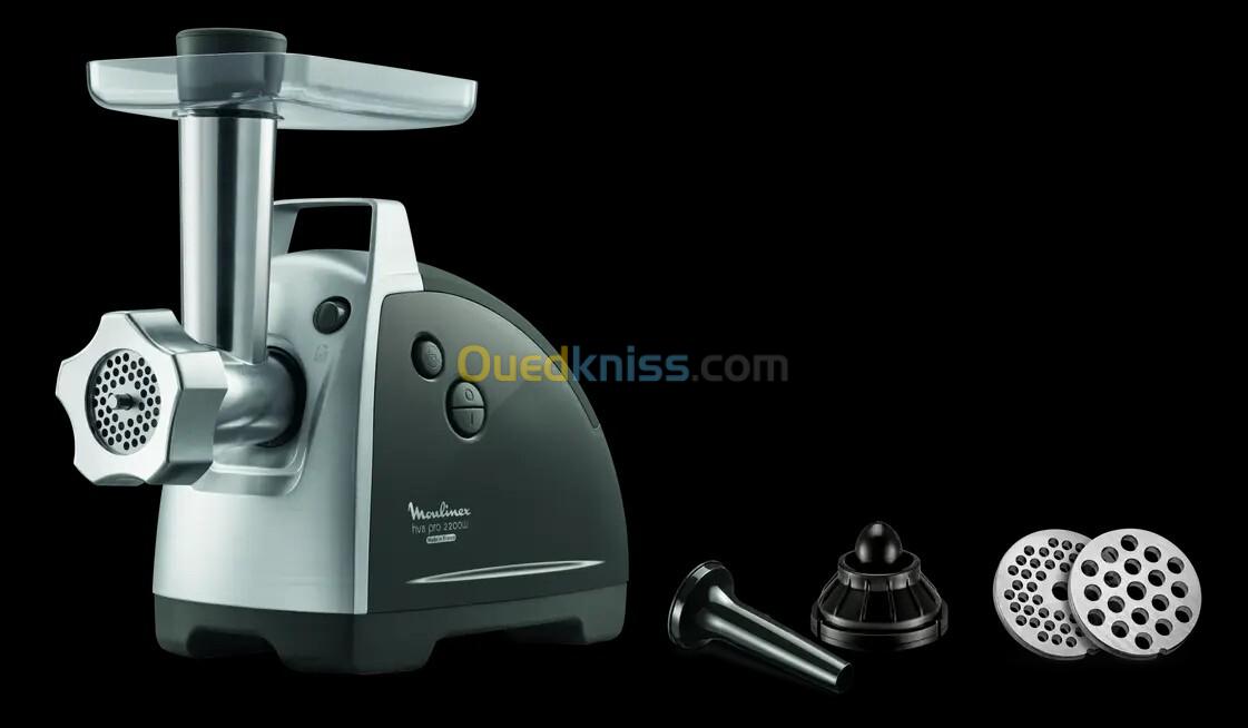 * Caractéristiques: 1- Performances durables dans le temps: jusqu'à 4,5 kg par minute pour des résultats de hachage rapides et performants grâce à son moteur robuste et puissant de 2 200 W 2- 4EN1: 4 accessoires inclus : 2 grilles en acier inoxydable pour obtenir 2 résultats de hachage différents : gros pour les steaks hachés maison et moyen pour les boulettes de viande et la sauce bolognaise maison. Les accessoires pour kebbés et saucisses vous permettent de les préparer en toute simplicité 3- Fonction "reverse" sécurisée: L'inverseur ne peut pas être engagé accidentellement sans qu'il soit d'abord remis en position d'arrêt. 4- Résistant grâce son interface métallique: Interface métallique entre la tête hachoir et le bloc moteur pour une utilisation longue durée 5- Facile à utiliser: Hachoir à viande avec une poignée pour un transport et un rangement facile 6- Facile à ranger: Le couteau, les grilles et les accessoires pour kebbés et saucisses peuvent être rangés dans un compartiment de l’appareil ** Garantie de marche 24 heures *** Livraison express disponible vers 53 wilayas ( ZRExpress/DHD/Anderson) **** Lieu de magasin: KOLEA, En face centre des impôts (maps; Célix Home)