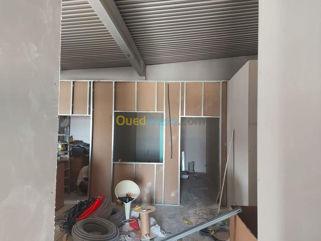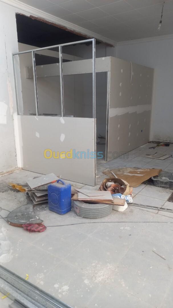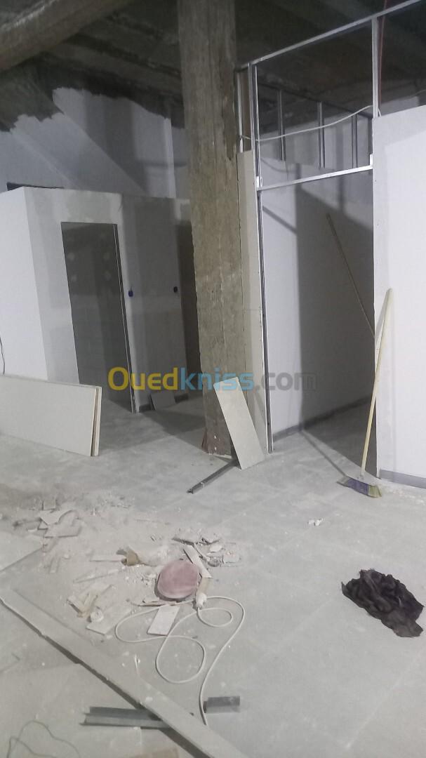 Nova Bat Construction vous propose si service de séparation et habillage murale en placoplâtre BA13 avec isolation thermique et phonique et habillage des plafonds.