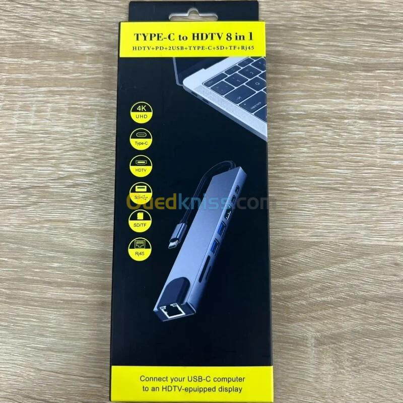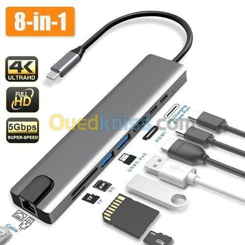 ADAPTATEUR TYPE-C 8 IN 1 RJ45+TF/SD+HDTV+USBx2+PD+TYPE-C