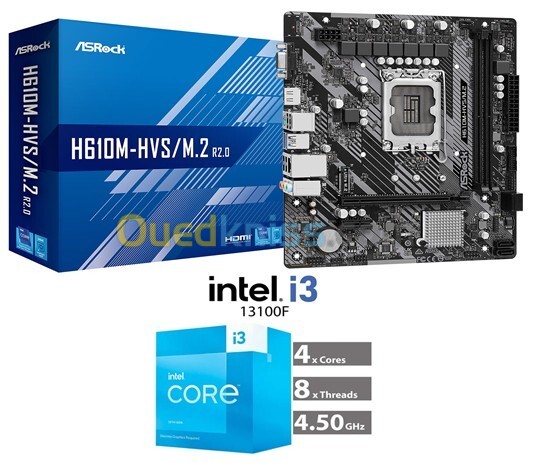 BUNDLE CARTE MERE ASROCK H610M-HVS/M.2 R2.0 + CPU INTEL CORE i3 13100F